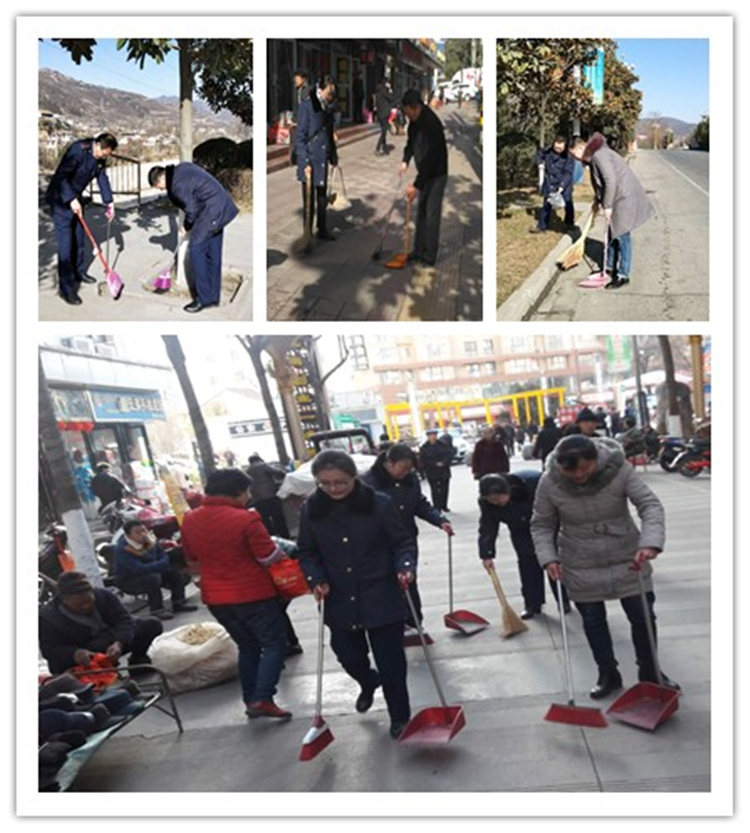 在打扫过程中,机关干部以绿化带垃圾、卫生死角、烟头杂物清理为重点,对新民街、宝鸡路等路段的环境卫生进行了集中整治,在整治过程中,机关干部还积极督促责任区内的门店参与环境卫生整治,落实“门前三包”责任,对酒店、饭店、小饮食摊点的卫生进行了检查。